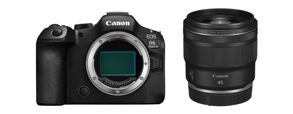 L-R: EOS R6 Mark III and RF 45mm f/1.2 STM prime lens