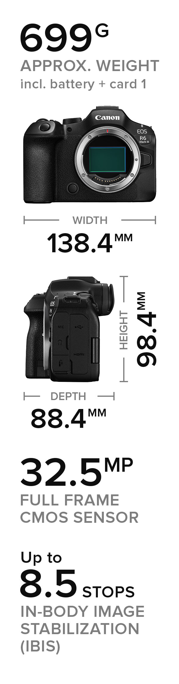 From fleeting moments to moving stories, the EOS R6 Mark III is your all-in-one creative companion—built to capture the feeling of every journey.