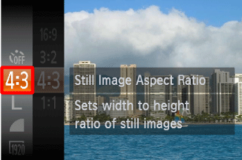 Operate the ⋖directional buttons⋗ up or down to select [Still Image Aspect Ratio].