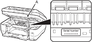 The product serial number is required when registering the product. The serial number is located inside the machine (as shown in the illustration).