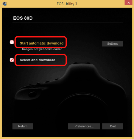 1. After the main window of EOS Utility appears, click [Download Images to Computer].