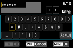 In the bottom entry area, press the ⋖Multi-controller⋗ to select a character, then press ⋖⋗ to enter it.