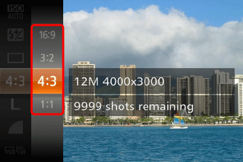 ⋗ buttons or turn the ⋖Control dial⋗ to choose the desired aspect ratio, and then press the ⋖FUNC./SET⋗ (