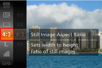 ⋗ buttons or turn the ⋖Control dial⋗ to choose [Still Image Aspect Ratio], and then press the ⋖FUNC./SET⋗ (