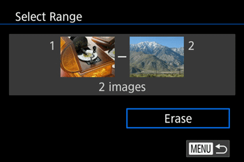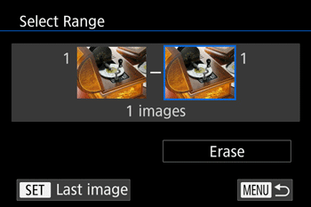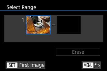 ] buttons to choose the [First Image] in the series of images that you want to erase, and then press the [