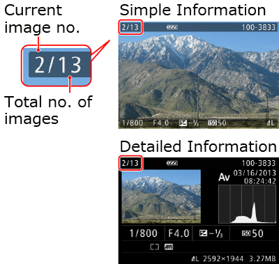 You can confirm the number of images taken by switching the display mode to Simple Information Display or Detailed Information Display.