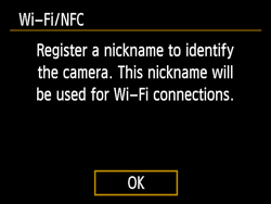 When the camera is connected to another device wirelessly, the nickname will be displayed on the device. Be sure to set a nickname as otherwise you cannot set the wireless functions.