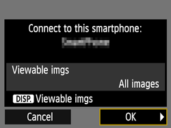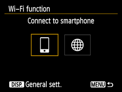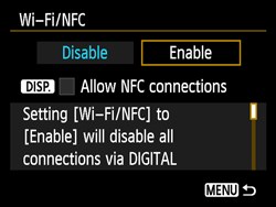 For an NFC-enabled smartphone, press the ⋖ DISP. ⋗ button to add [ ] to [Allow NFC connections].