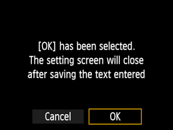 | Finishing the text entry | Press the < MENU > button to confirm what you have entered and exit. If a confirmation dialog is displayed, select [OK] to exit. |