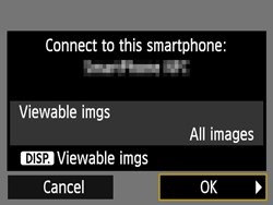 1. On the Camera Connect menu screen on the smartphone, choose [Images on camera].