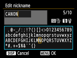 For details on keyboard operation when registering a nickname (identification name) of the camera, refer to the following.
