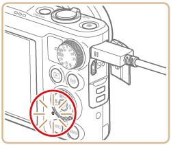 8. When charging has finished, remove the compact power adapter from the power outlet and the interface cable from the camera.