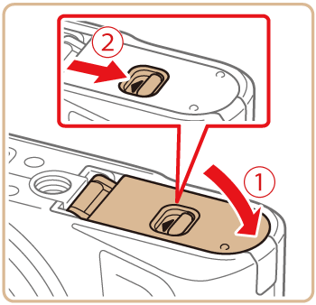in the direction of the arrow and insert the battery pack until the lock clicks shut.