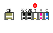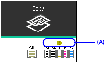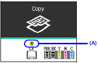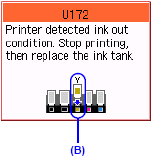 | Machine detected ink out condition. See "An Error Message Is Displayed on the LCD" and take appropriate action. (B) Empty ink tank. |