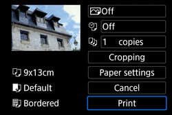 Step 1: Connect the camera and printer via Wireless LAN (camera access point mode)Step 2: Print