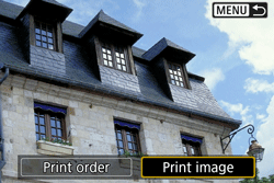 1. Turn the ⋖ ⋗ dial to select an image to print, then press ⋖