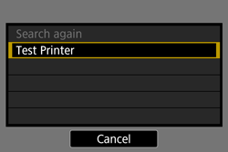 11. When a list of detected printers is displayed, select the printer to connect to and press ⋖ ⋗.