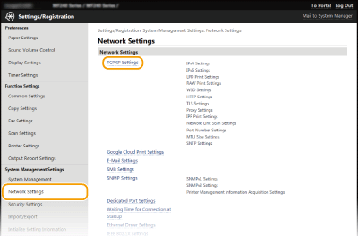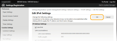 Connecting the machine to a network requires a unique network IP address. Two versions of IP addresses are available: IPv4 and IPv6. Configure these settings depending on the network environment. To use IPv6 addresses, you need to properly configure the IPv4 address settings.