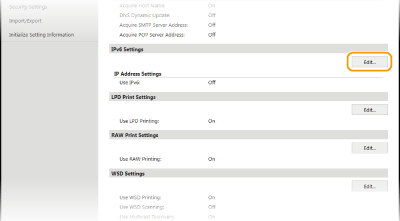 IPv6 settings can also be accessed from ⋖Menu⋗ in the ⋖Home⋗ Screen. For details, see the "User's Guide" from the Canon website (canon.com/oip-manual).