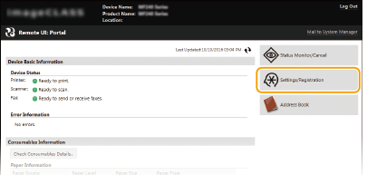 1. Start the Remote UI and log on in System Manager Mode. For details, see the "User's Guide" from the Canon website (canon.com/oip-manual).