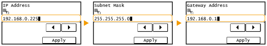 4-B-3. Specify the IP address, subnet mask, and gateway address (or default gateway).