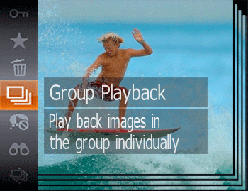 Shooting in Creative Shot modeViewing Individual Images in a Group during Playback (Grouped Image Playback)
