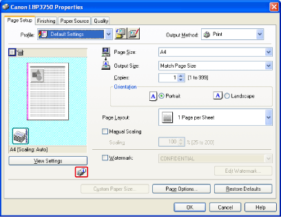 ] (Display Printer Status Window) in locations such as in the [Page Setup] sheet in the printer driver.