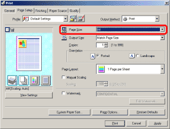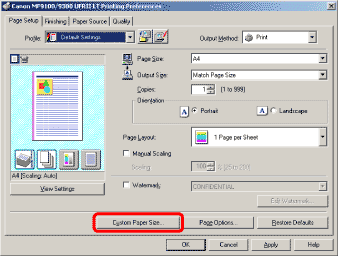 If you select [Custom ] in [Page Size], you may not be able to specify [Manual Scaling], [Page Layout] or [2-sided Printing].