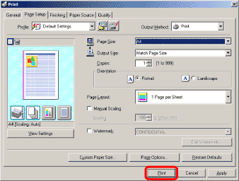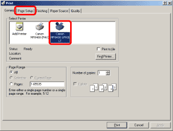 If the [Page Setup] tab does not displayed, click [Properties] or [Printer Preference].