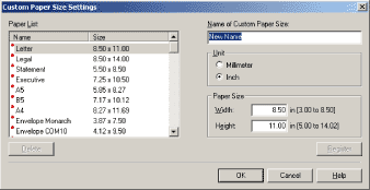 You can specify the size of custom size paper beforehand. (See "Registering the Custom Size.")