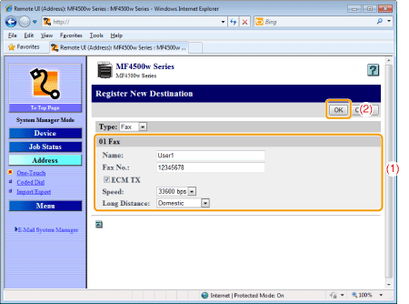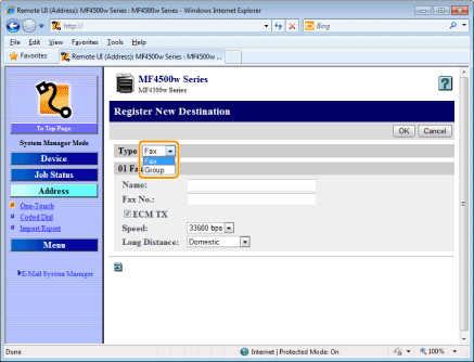 Registering and Editing via the Operation PanelRegistering and Editing One-Touch Keys via the Remote UI (MF4580dw/MF4570dw Only)