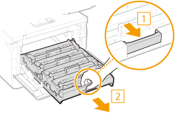 When removing the toner cartridge from this machine for storage, attach the protective cover for the drum, and then place the removed toner cartridge into the original protective bag or wrap it with a thick cloth.