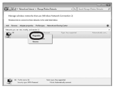 Click Start ⋗ Control Panel ⋗ View network status and tasks ⋗ Manage wireless networks.