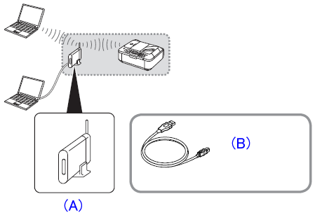 (B)Wireless LAN setup cable:The supplied Wireless LAN setup cable is temporarily required for wireless setup.