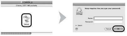 Double-click the Setup icon of the CD-ROM folder to proceed to the following screen. Enter your administrator name and password, then click OK.