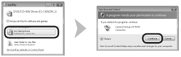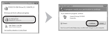 Click Run Msetup4.exe on the AutoPlay screen, then click Continue or Yes on the User Account Control dialog box.