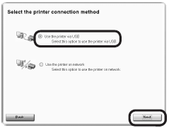 When the Printer Connection screen appears, connect the machine to the computer with the USB cable.