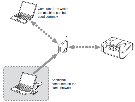 For the software installation procedure, refer to How to perform the wireless LAN setup so that other computers can share the same printer(Macintosh).