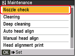 button to select Maintenance, then press the OK button. The Maintenance screen is displayed.