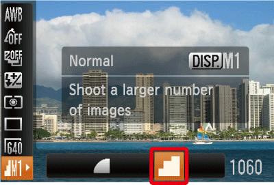 Operate the ⋖directional buttons⋗ left or right to select the compression ratio* setting you want to change to. (The [Normal] () setting is selected in the image shown above.)