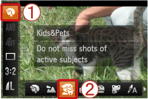 Turn the ⋖Control Dial⋗ or operate the ⋖directional buttons⋗ left or right to select [Shooting mode] (The [Kids&Pets] (