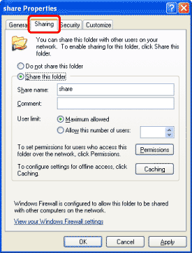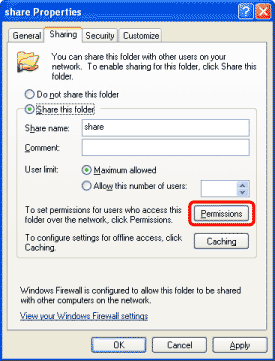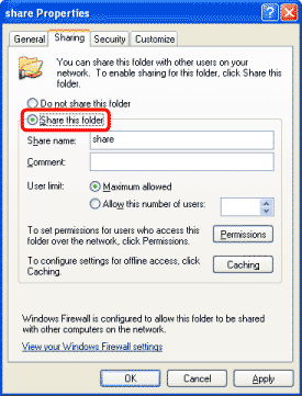If you are using Windows XP Professional or Windows XP Home Edition, use simple file sharing to set up the shared folders without access control.