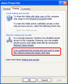 4. Click [If you understand the security risks but want to share files without running the wizard, click here.].