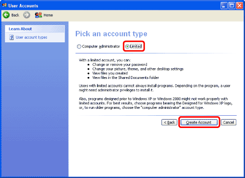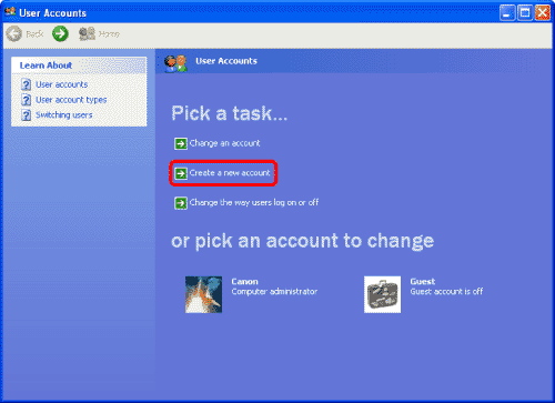 You need to create user accounts for users who access the shared folder in advance. This section describes the procedure for creating a new account on your computer.