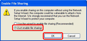 5. In the [Enable File Sharing] dialog box, select the [Just enable file sharing] check box, and then click [OK].