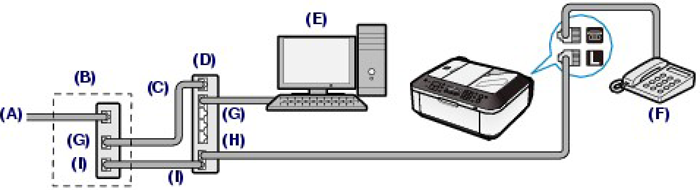 When the splitter is not built-in to the modem, do not branch the telephone line before the splitter (wall side). And also, do not connect splitters in parallel. The machine may not be able to operate properly.
