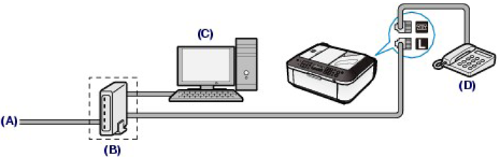 (B) xDSL modem (splitter may not be built-in to the modem)