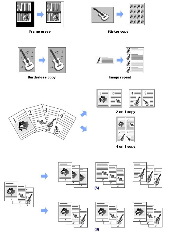 You can copy in the various methods such as enlarging/reducing or copying two original pages onto a single sheet of paper.