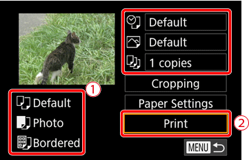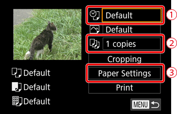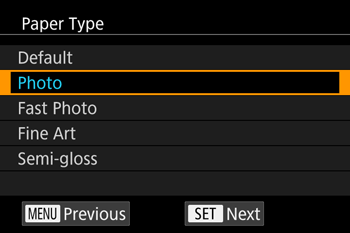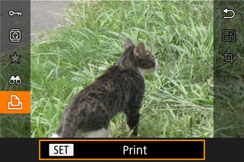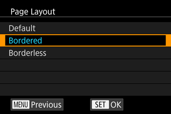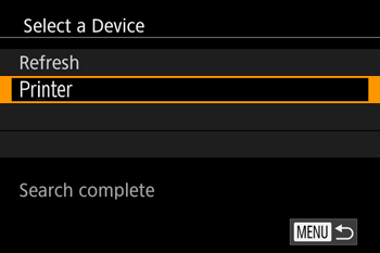 6. Once the printer is ready for the connection, the printer’s name will be displayed on the camera. Press the [ ] button.