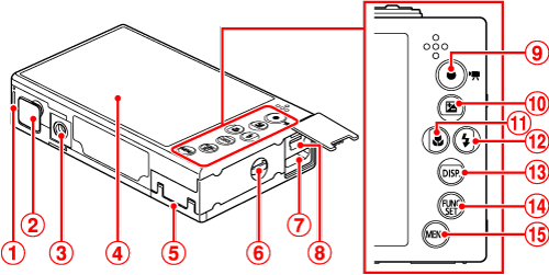 | Zoom lever Shooting: Playback: | Lamp | ||